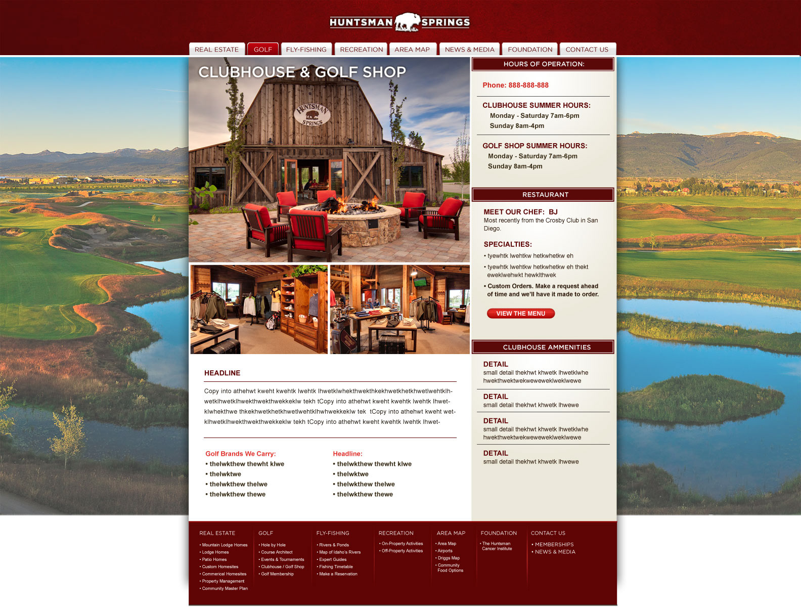 Web and print design to showcase a rural luxury community, showcase real estate offerings, golf course, and nearby recreation.